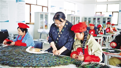 二级伤残的刘占永,在这里从学员成长为能独立授课的培训讲师,重燃生活希望;需要照顾家庭的妇女顾春芳,通过在家制作羽毛饰品,找到了家庭与收入的平衡点;患病仍需定期透析的张猛,也在合作社找到了力所能及的劳动岗位,实现了自身价值……一根根轻盈的孔雀羽毛,通过非遗技艺的联结,托举起一个个家庭奔向美好生活的梦想。